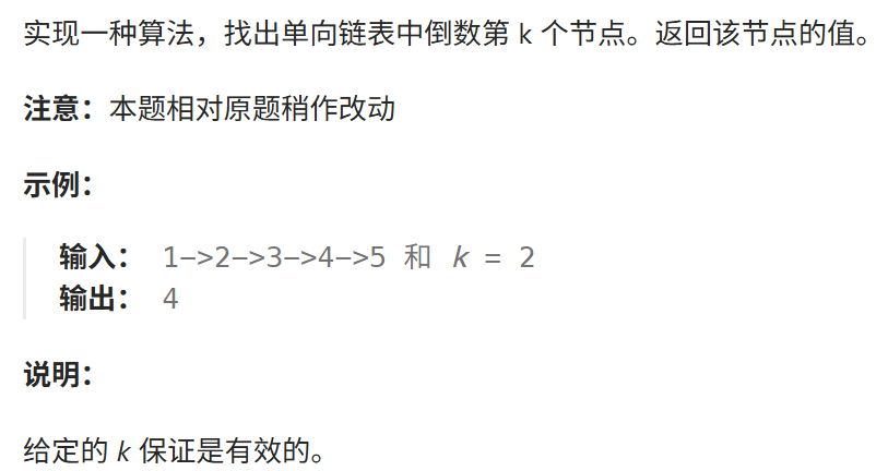 https://leetcode.cn/problems/kth-node-from-end-of-list-lcci/