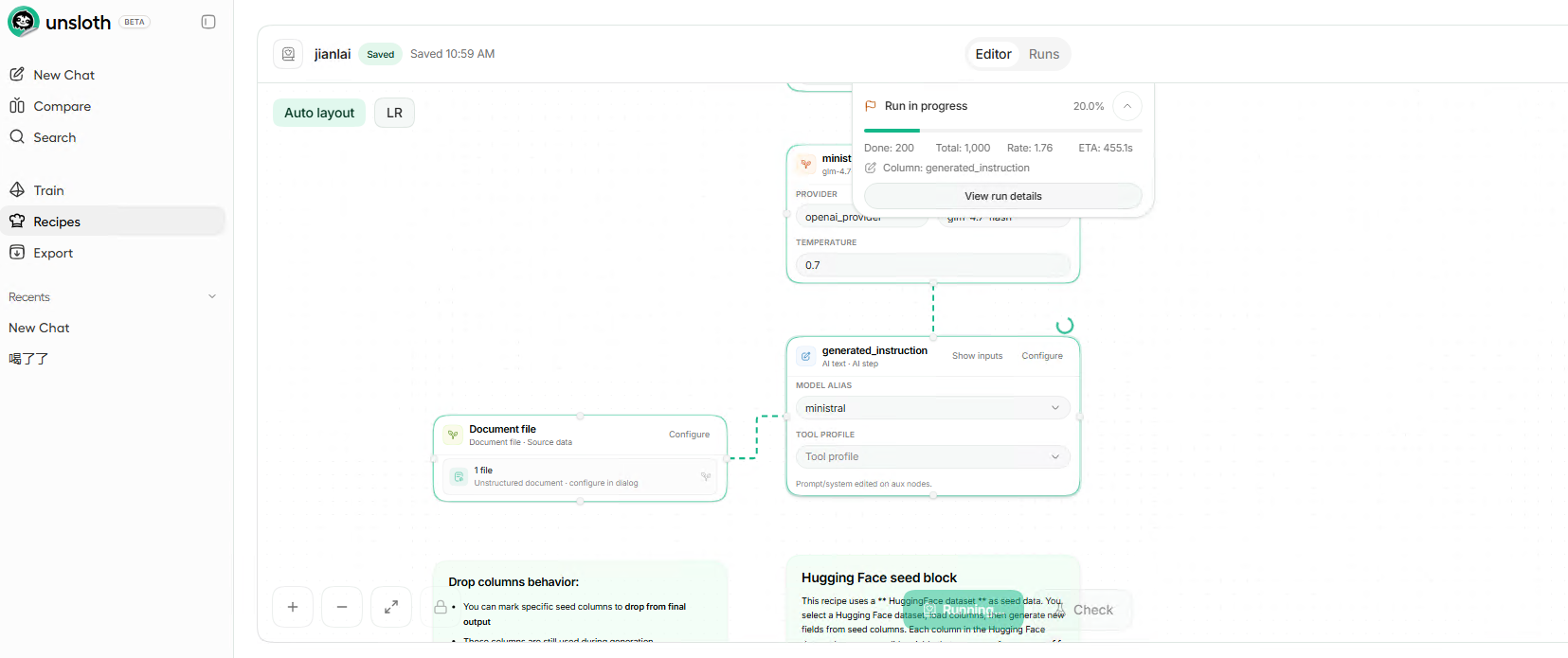 Preview Run(预览运行):仅用于快速调试,不会生成持久化的本地数据集文件,因此不会出现在Train页面的数据集列表里。