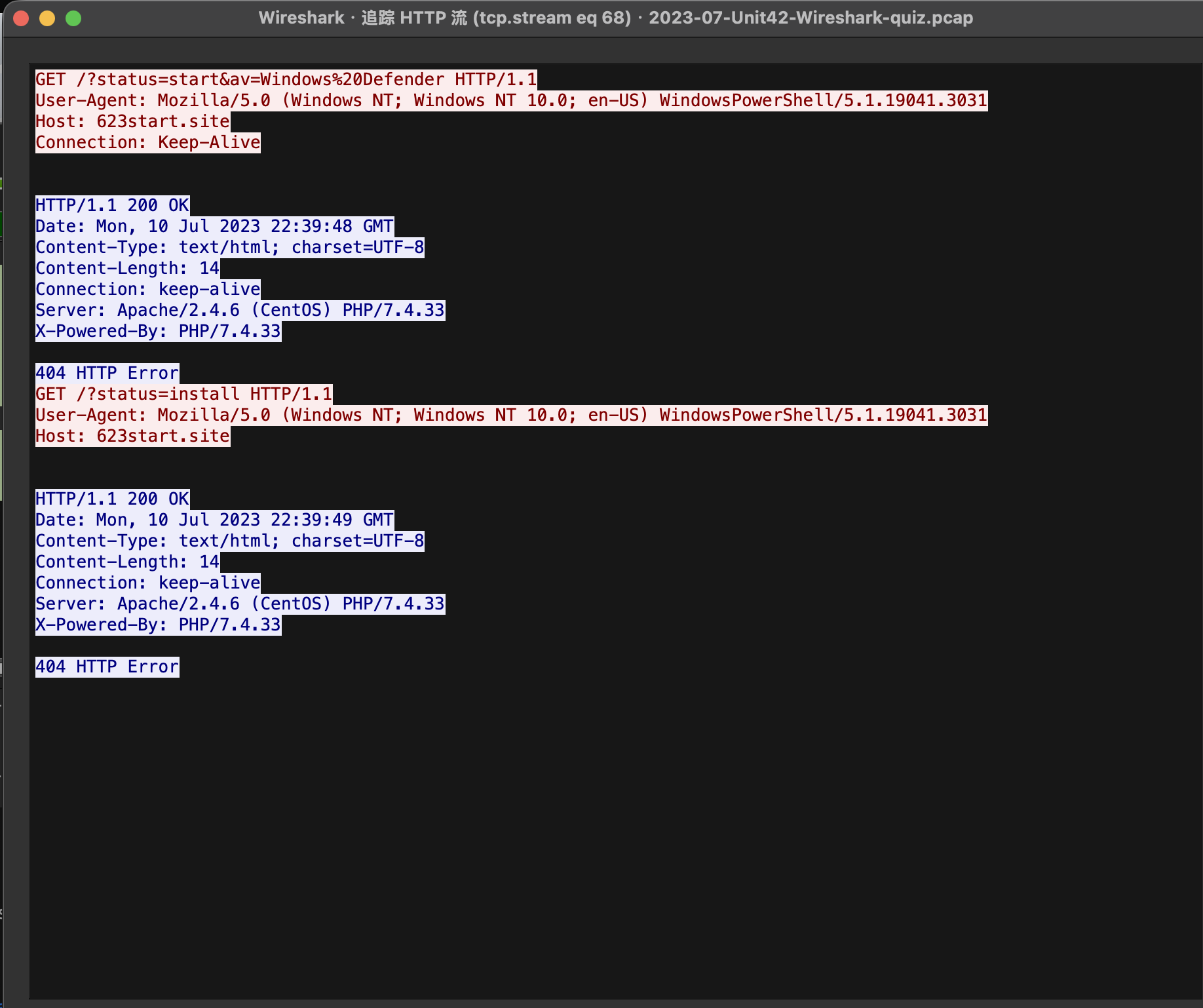 结合该包的时间,我们可以推算出,主机被感染的时间可能就是,该包发出请求的时间为:2023-07-10 22:39:47 UTC,结合DNS查询时的时间,