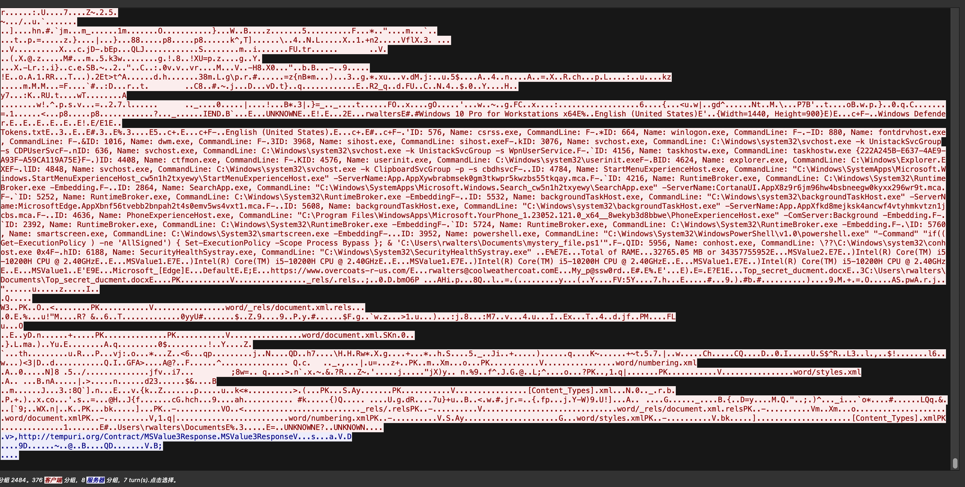 在后续的流量中,我们还可以发现客户端会上传的内容: