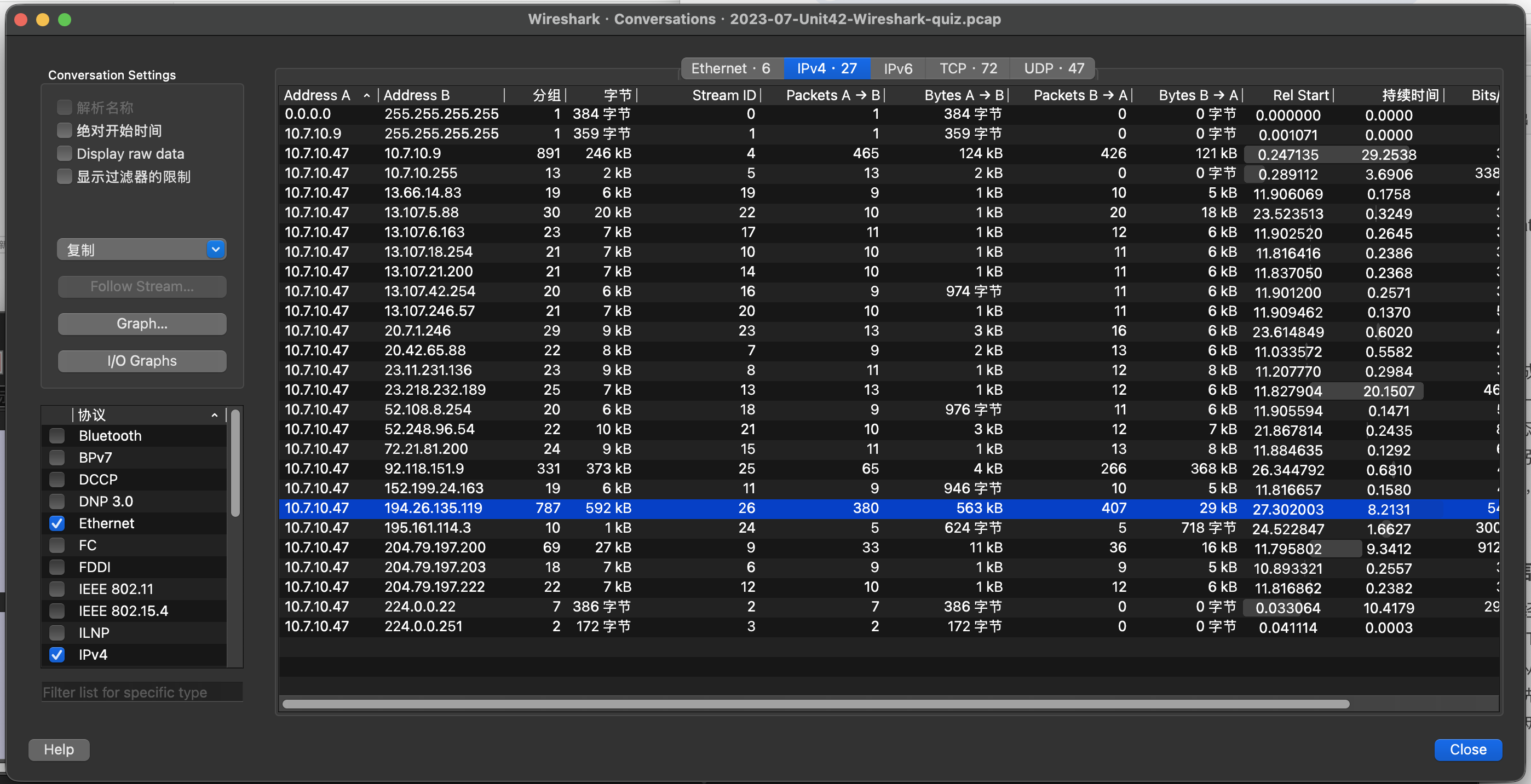经过阅读这两个包,我们已经确定了要调查的目标,为10.7.10.47,且目标大概率是Windows系统。