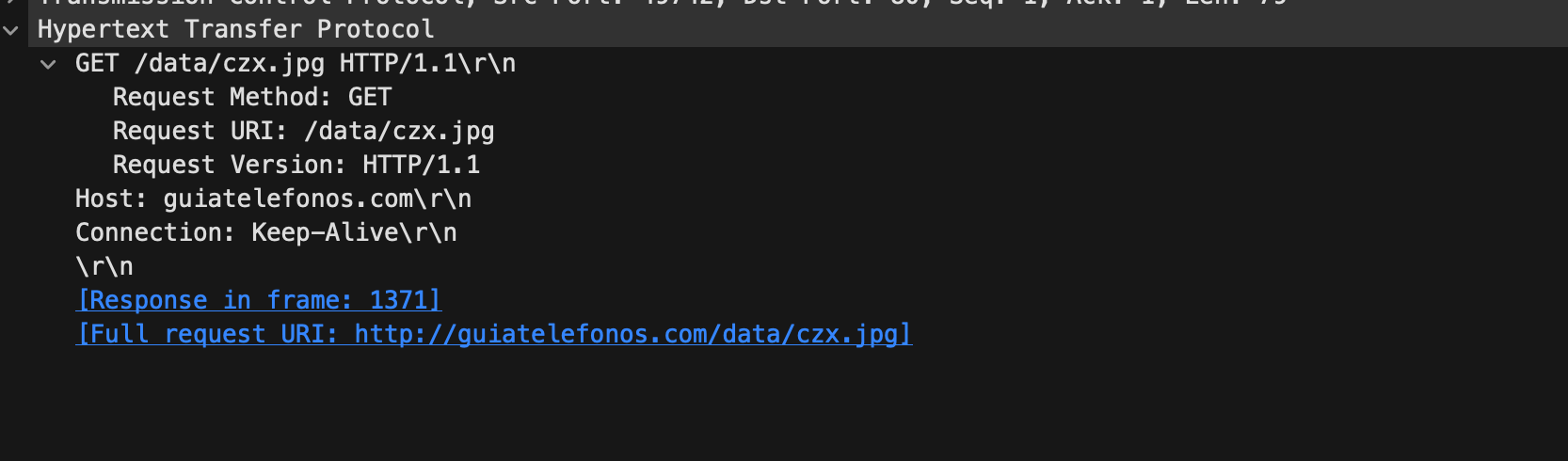 HTTP明文部分告知我们:客户端访问了 guiatelefonos.com 的 /data/czx.jpg;