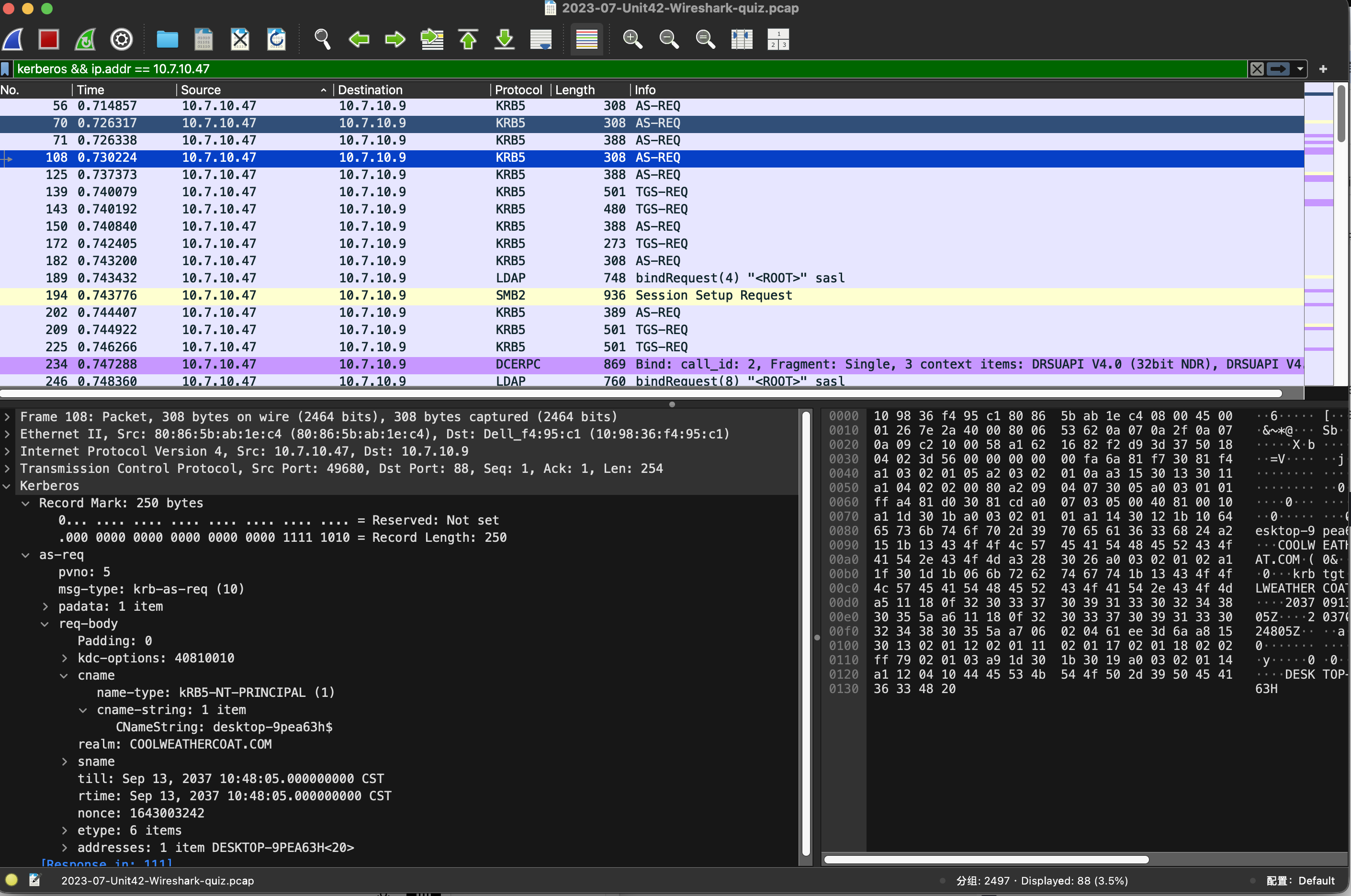 kerberos && ip.addr == 10.7.10.47