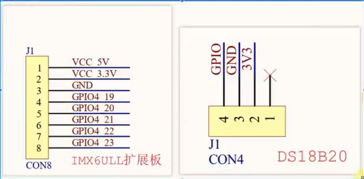 | 2 | DQ(数据) | 接 GPIO4_19,同时用 4.7kΩ~10kΩ 上拉电阻 接 3.3V |