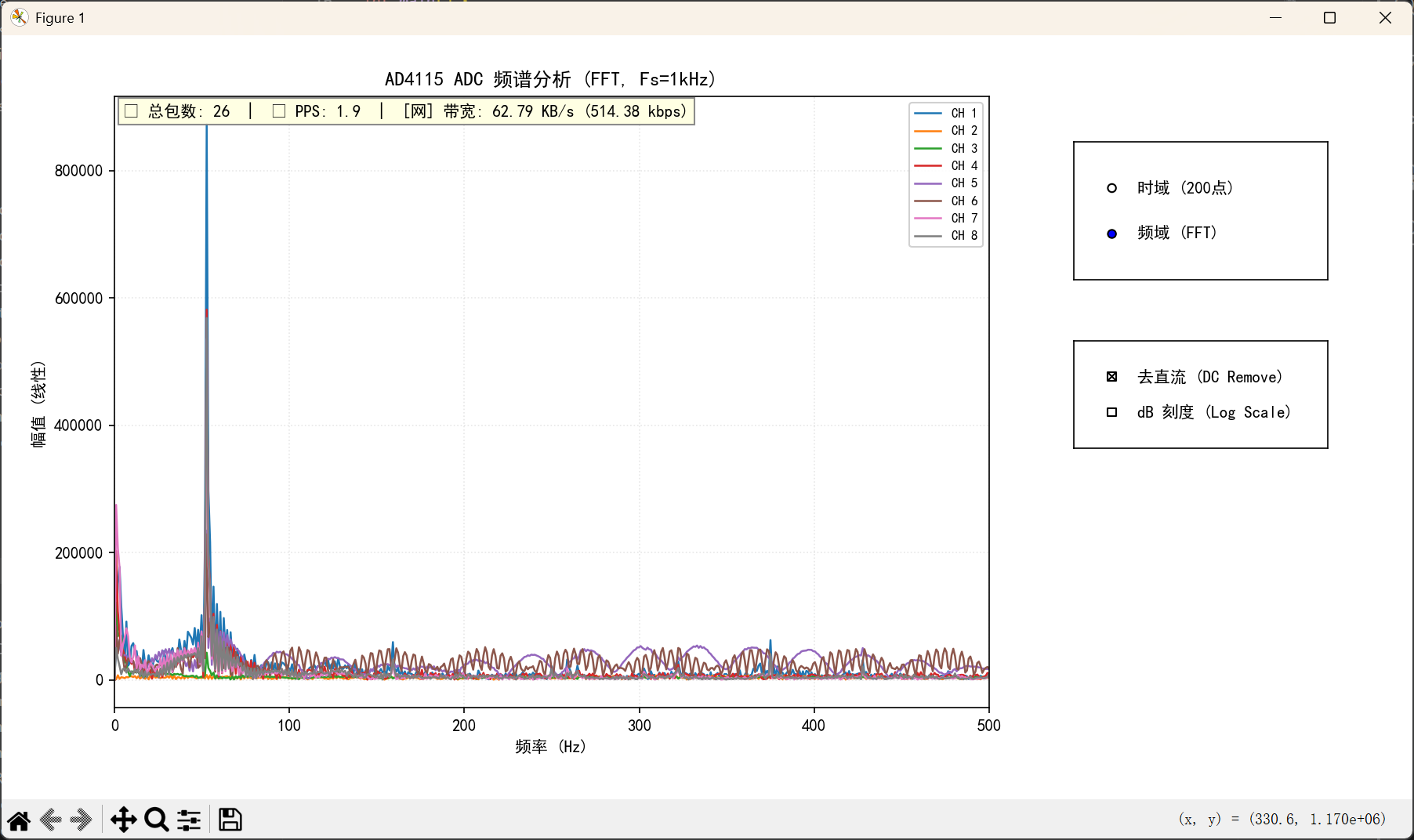 Sample 1000: CH0: -119296 CH1: -163327 CH2: -236798 CH3: 1064195 CH4: -243708 CH5: -61179 CH6: -128506 CH7: -145401