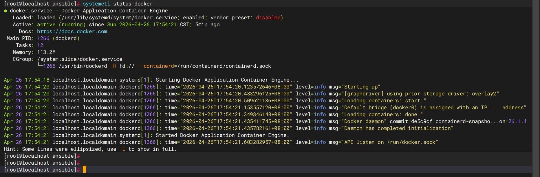 - name: 检查 Docker 服务状态