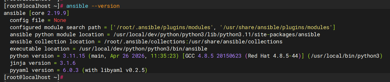 安装好 Python 命令后,敲下面的命令安装 Ansible