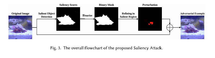 在本节中,我们首先形式化为图像分类模型制作 AE 的问题,然后详细阐述我们的方法。图 3 展示了显著性攻击的整体流程图。