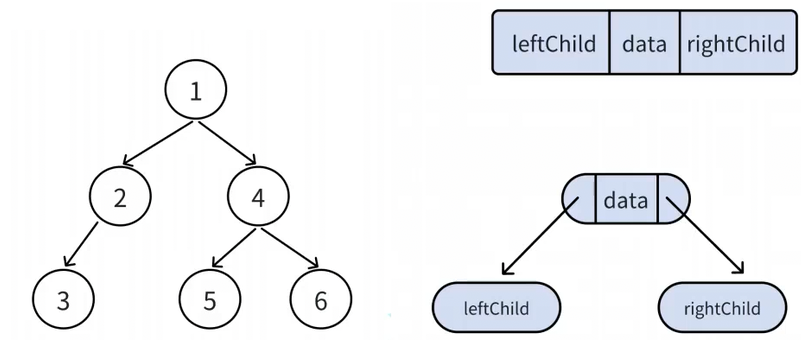 ⽤链表来表⽰⼀棵⼆叉树,即⽤链来指⽰元素的逻辑关系。 通常的⽅法是链表中每个结点由三个域组 成,数据域和左右指针域,左右指针分别⽤来给出该结点左孩⼦和右孩⼦所在的链结点的存储地址 , 其结构如下:
