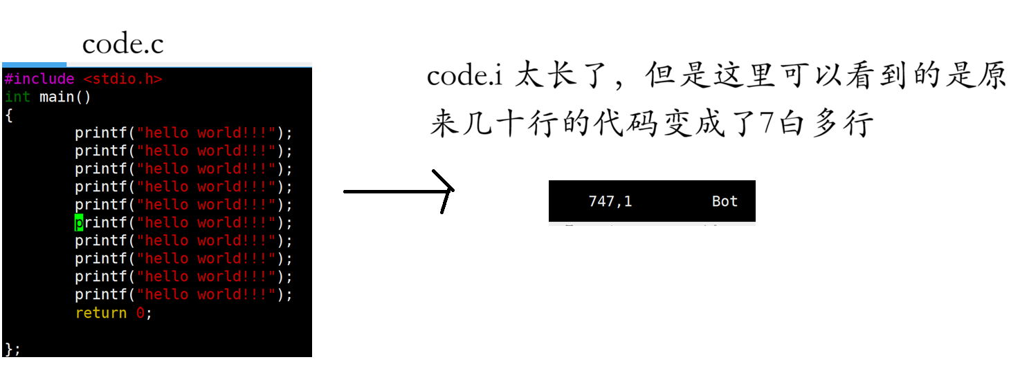 gcc -E 要编译的文件 -o 目标文件