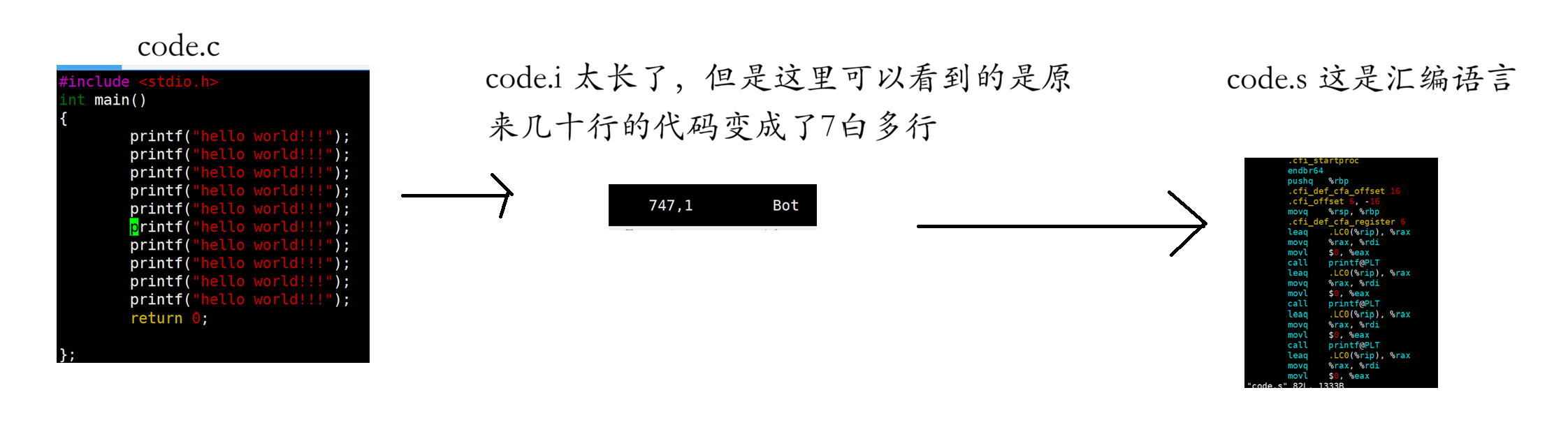 gcc -S 预处理生成的文件 -o 目标文件