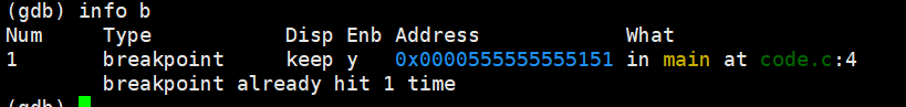 info b ------查看断点