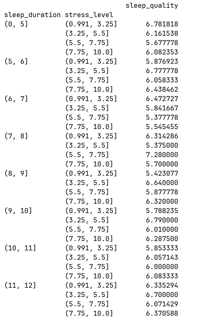 print(df.pivot_table(values="sleep_quality", index=[sleep_duration_stage, stress_level_stage], aggfunc="mean"))