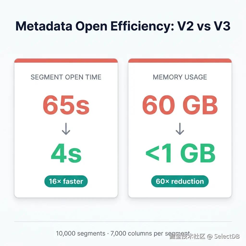 - 列压缩与编码优化:引入更高效的二进制编码与预解码机制,降低运行时解码成本;默认压缩逐步切换至 ZSTD,在压缩率与解压性能之间取得更优平衡。在宽表与明细查询场景中,体现为更低存储占用与更优冷读性能。