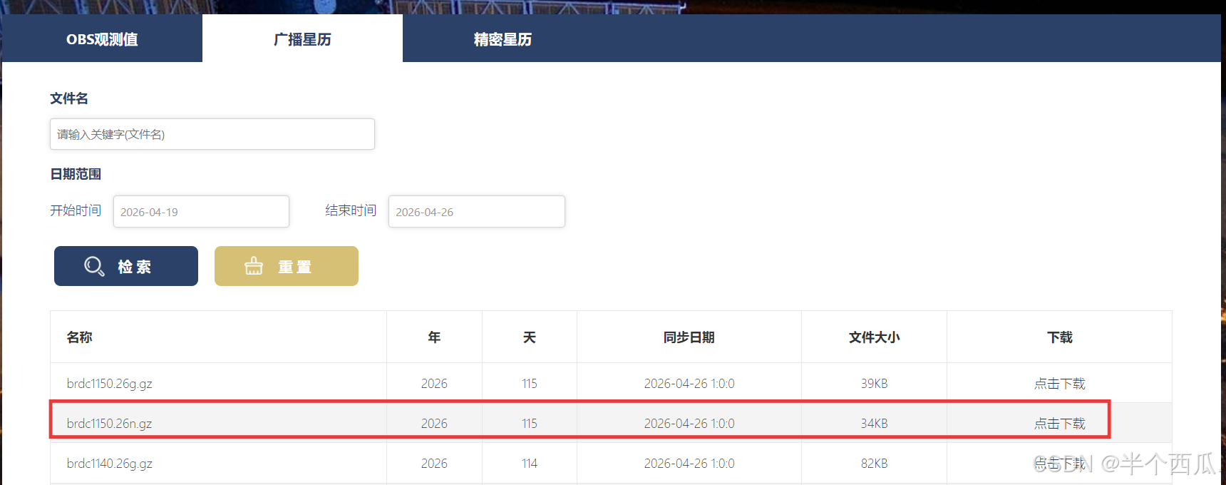(2)在武汉大学IGS数据中心网站获取星历文件,保证数据时效性;