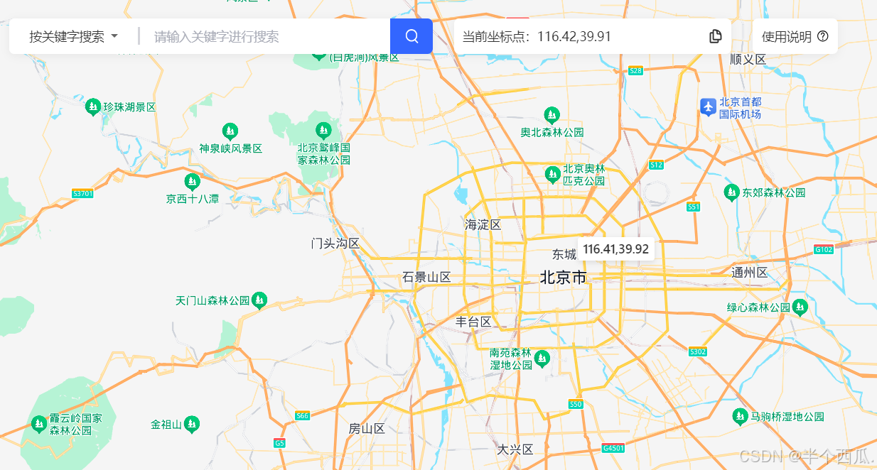 (1)需要先在地图上确认GPS欺骗的地点坐标,点击地点获取经纬度;