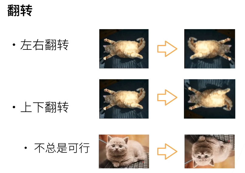 注意:上下翻转不总是可行,要保持处理后的图像至少是合理的。