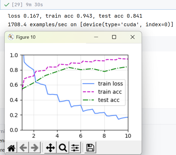 train_ch13(net, train_iter, test_iter, loss, trainer, 10, devices)