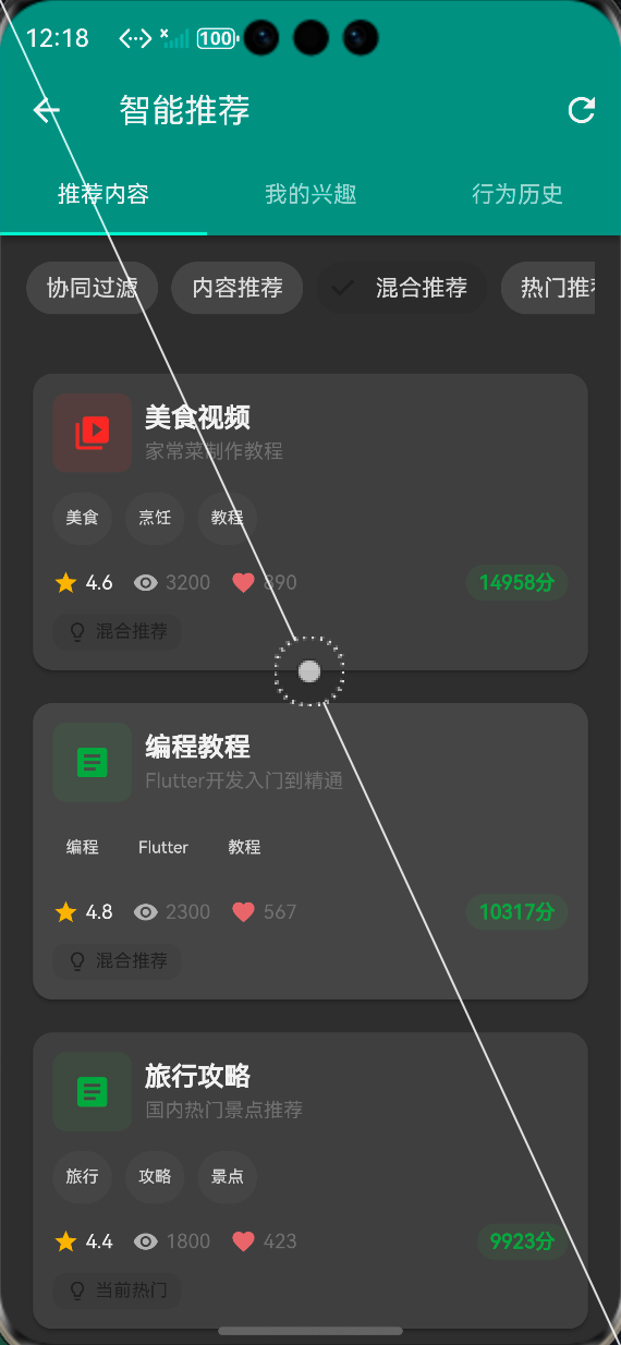 在移动应用的用户体验体系中,个性化智能推荐是提升用户留存与使用时长的核心能力,通过分析用户行为数据,精准匹配用户感兴趣的内容,能大幅降低用户的内容筛选成本,提升产品粘性。在开源鸿蒙跨平台应用开发中,离线化、轻量化的推荐算法更适配鸿蒙设备的运行环境,既能实现个性化推荐,又无需依赖云端服务,保证了功能的离线可用性。