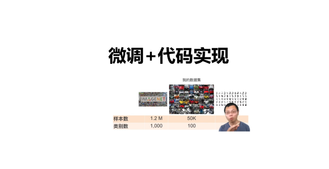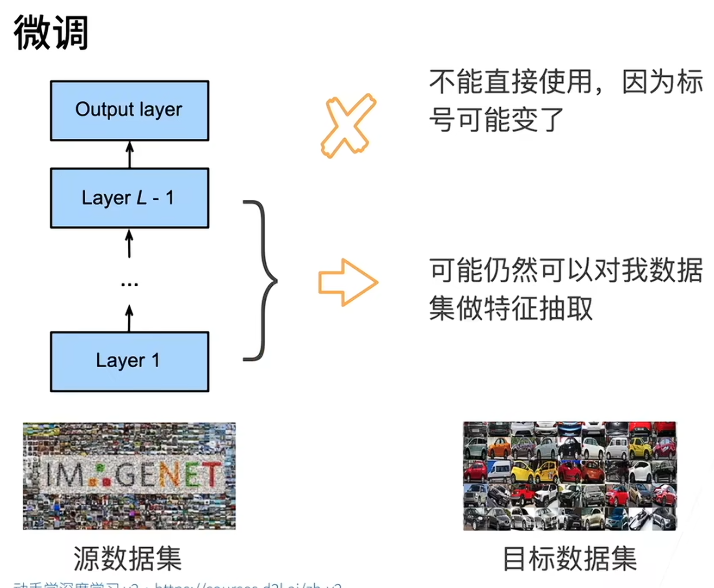 微调通过使用在大数据上得到的预训练好的模型来初始化模型权重来完成提升精度。预训练模型质量很重要(大家会讨论"你是在哪里预训练的模型",ImageNet只是一个起点,通常会在更大的数据集上进行训练)。可以利用先验知识通过微调进行扩展,且通常微调后速度更快、精度更高,因此深度学习在工业界迅速被广泛应用。