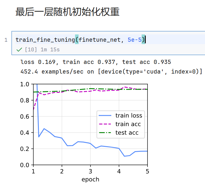 另外,finetune_net 中成员变量 features 的参数初始化为源模型相应层的参数,最后一层使用 xavier 随机初始化权重。