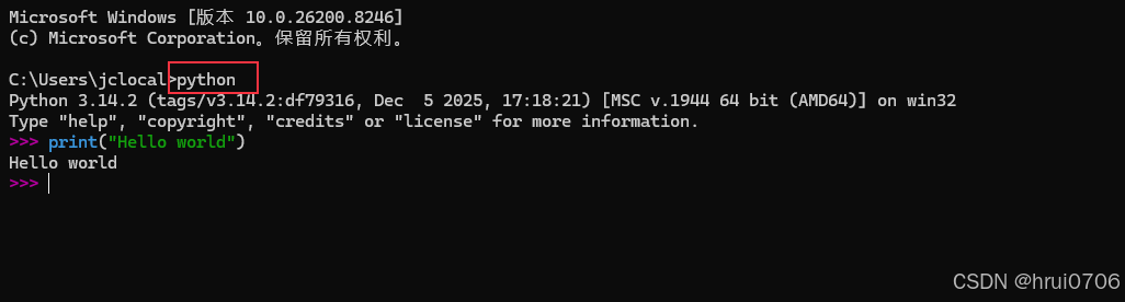 python -V (大写,查看版本)