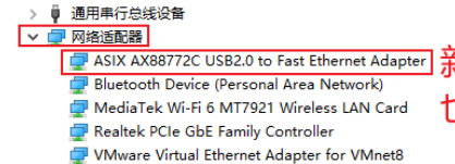 到windows设备管理器查看USB有线网卡的设备名字