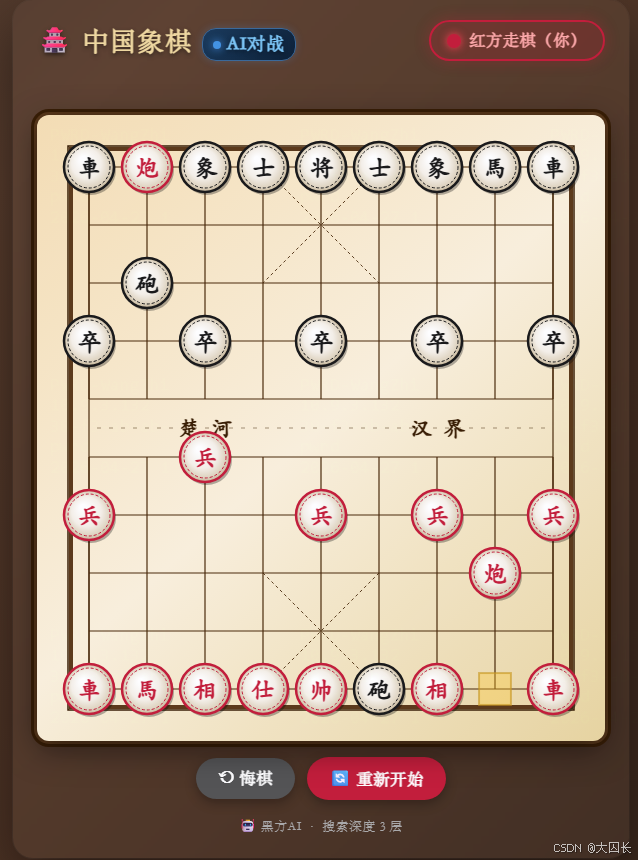 deepseek v4编写的AI人机对弈象棋,进步相当大。