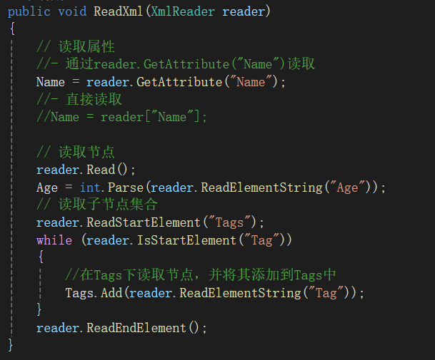 reader.ReadEndElement()========== 【演示:实现一个自定义类的反序列化方法】 ==========