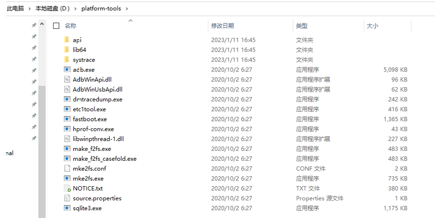 解压后,将 platform-tools 文件夹复制到 D 盘根目录 (举例)。