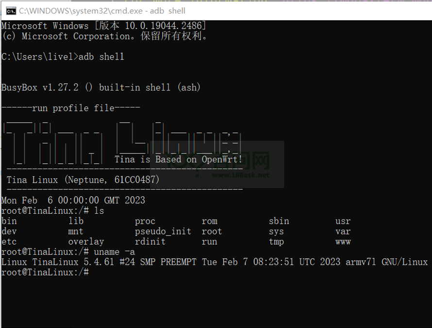 root@TinaLinux:/#提示符后按回车,即可进入 Shell。