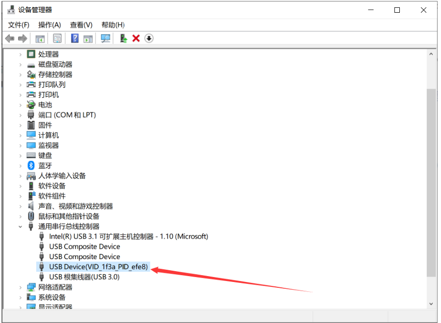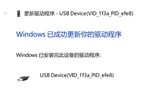 安装成功后,设备会变成 USB Device(VID_1f3a_PID_efe8) 。