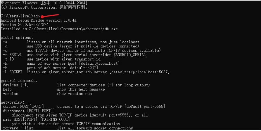 打开命令提示符,输出 adb命令可以直接看到我们的adb已经配置成功