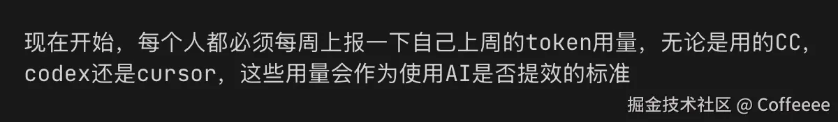 刚开始我还没把这个太当一回事,仍旧正常做需求,正常AI coding,每周用掉的token也有两三千万的用量,直到不久后领导把我喊过去