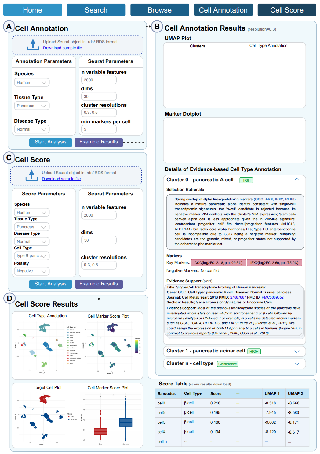 Figure 2. scMarkerAgent 的细胞注释和细胞评分页面
