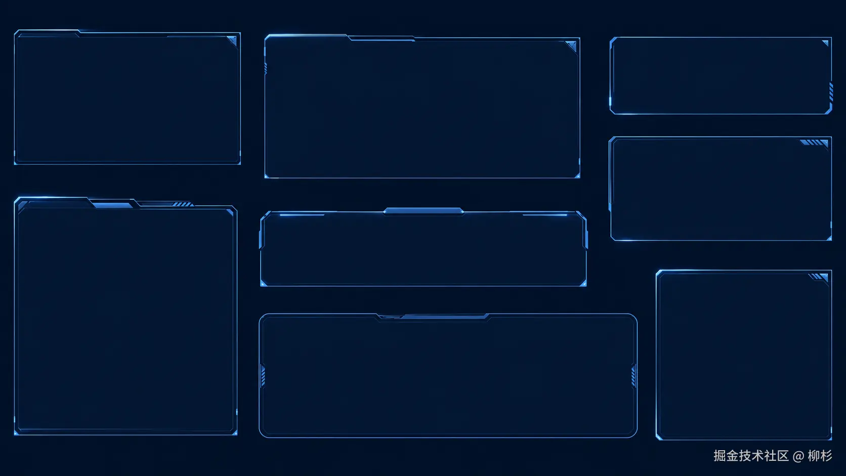 这个稍微复杂点。大屏里的卡片通常有装饰边框、角标、发光效果,但里面填满了文字和数据。我只想要那个"壳",不要内容。