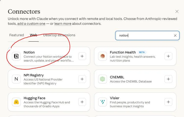 将 Claude 连接到 Notion 是 5 分钟内能做的最高杠杆操作。