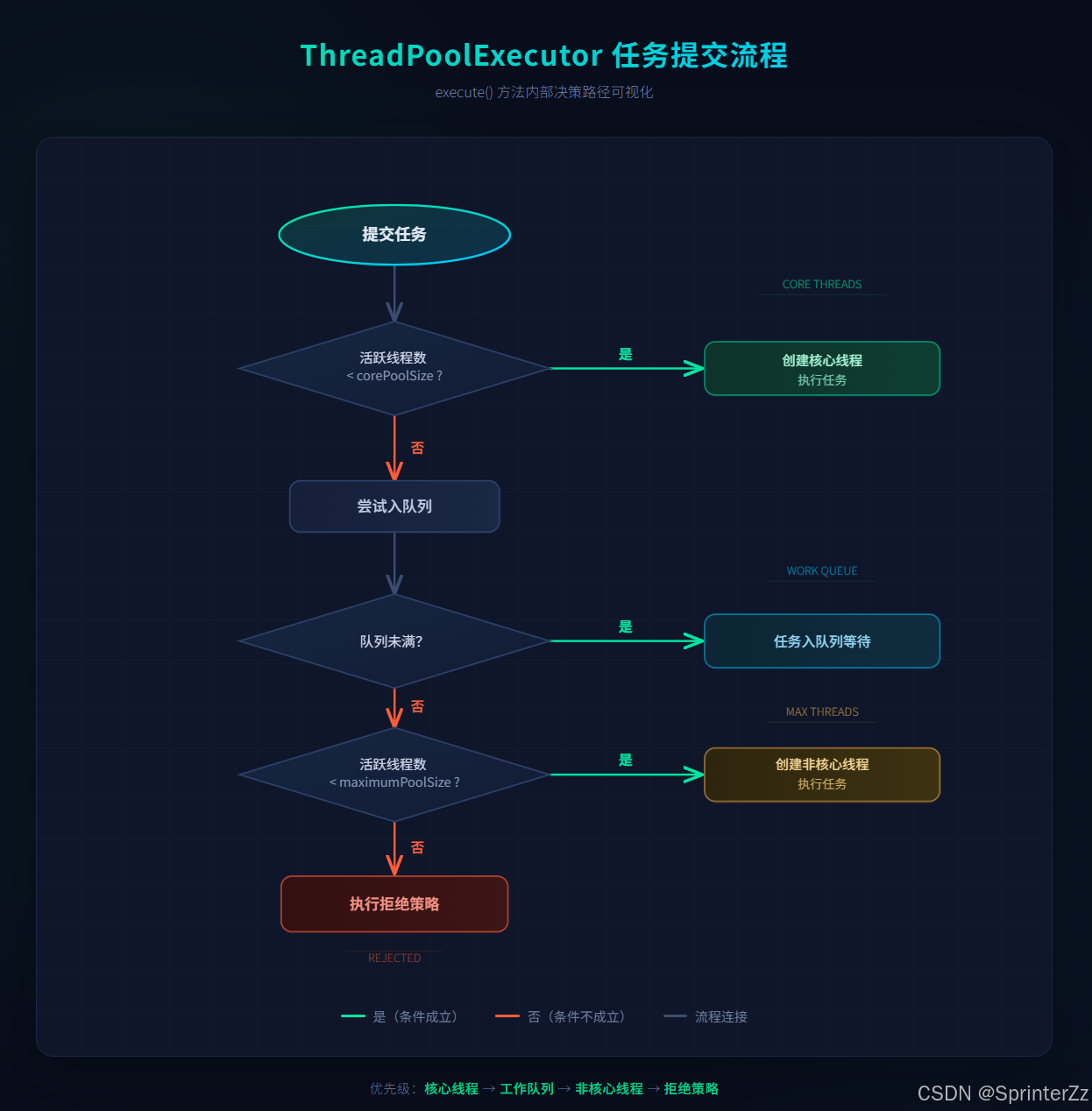 当向线程池提交一个任务时,执行顺序如下: