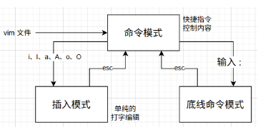 通过命令模式的:i a I A o O进入