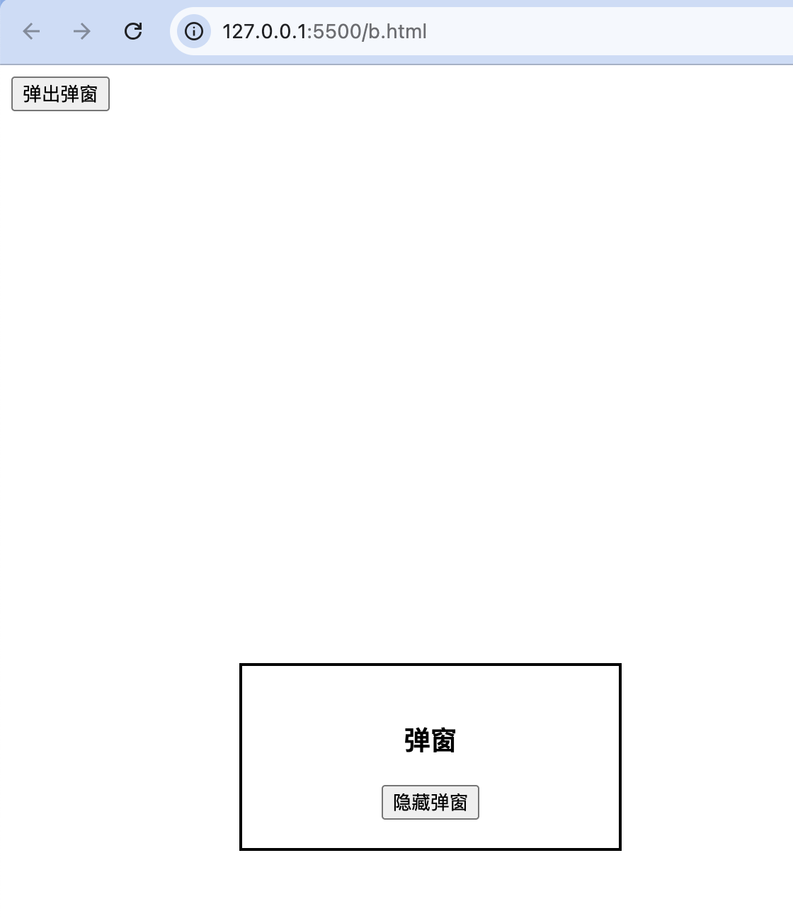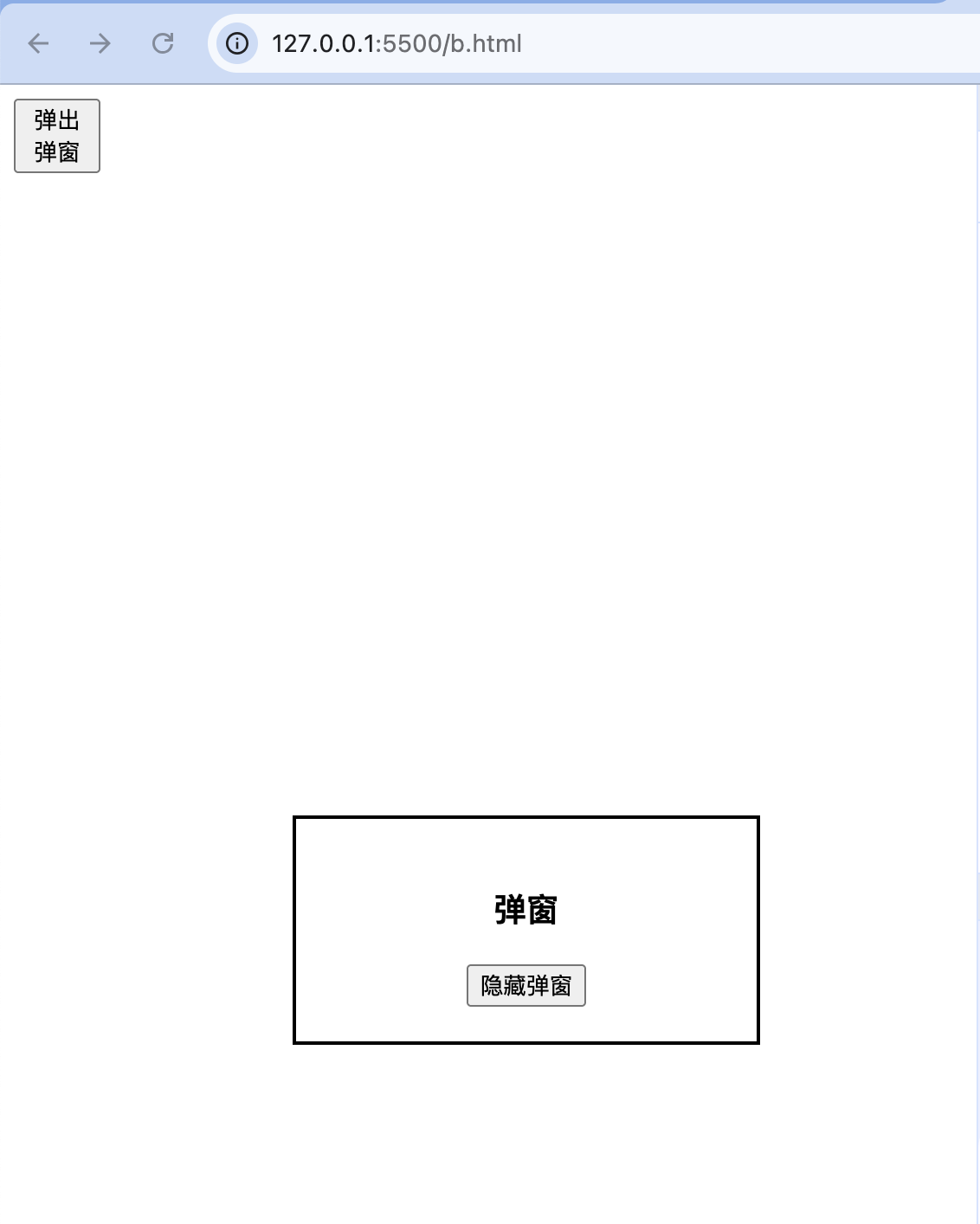 目前看来,我们的代码运行没什么问题,但是此组件的可用性并不好,当我们在其他组件内部使用此组件时,全局弹窗的布局可能无法达到我们的预期。例如,修改HTML结构如下: