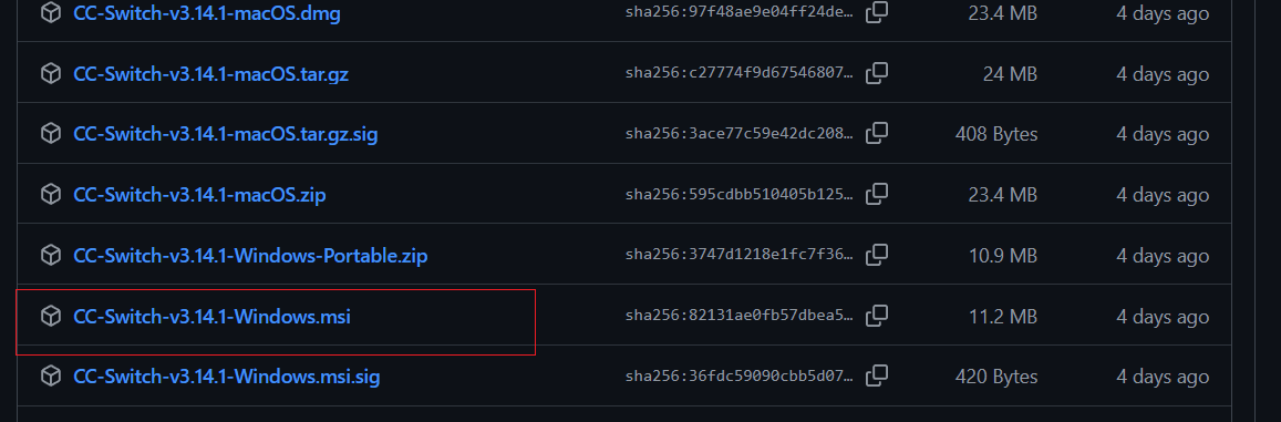 6.下载Windows.msi,并且选择合适的目录安装ccswitch