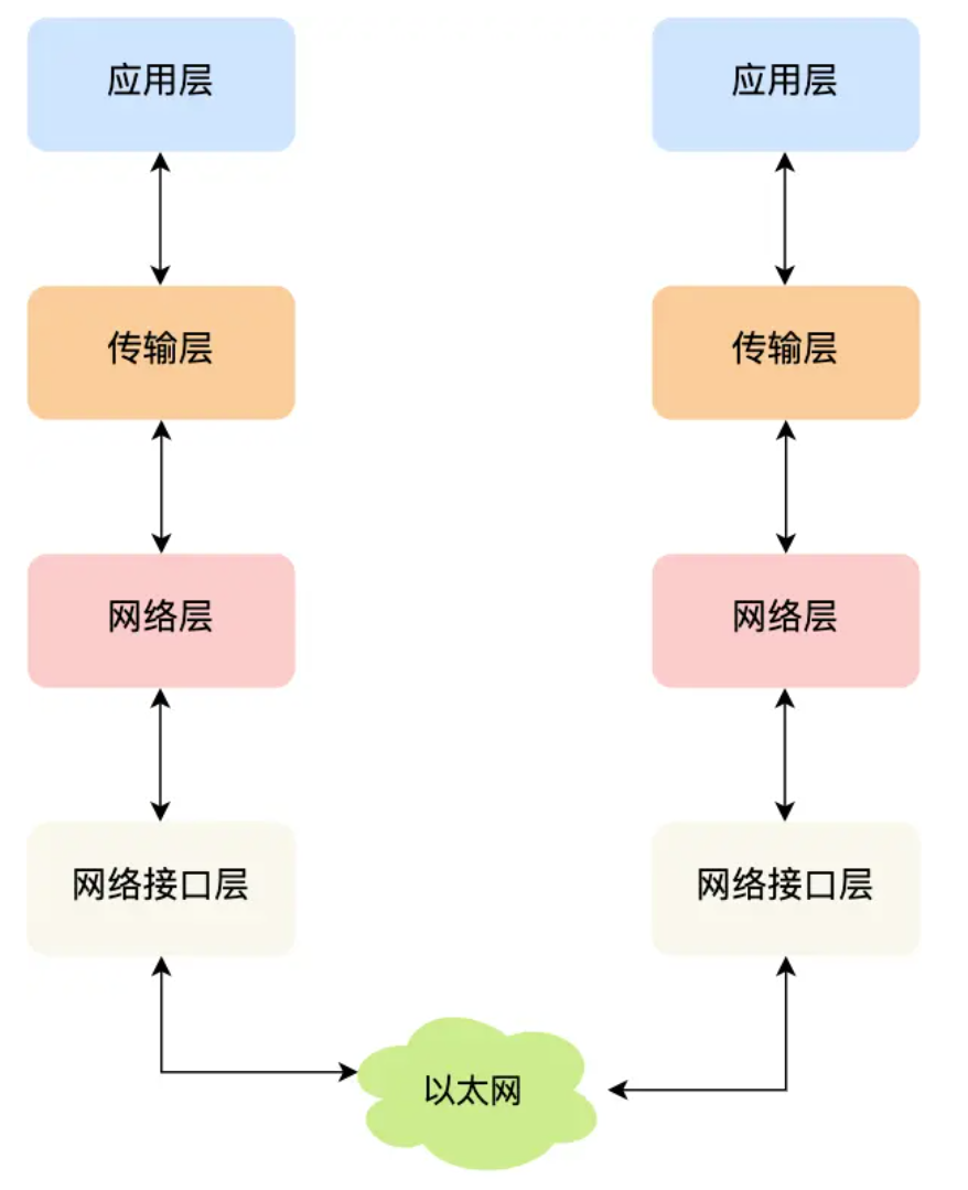 数据链路层(网络接口层)(以太网协议):完成点到点之间的传输,每个网络设备之间的传输