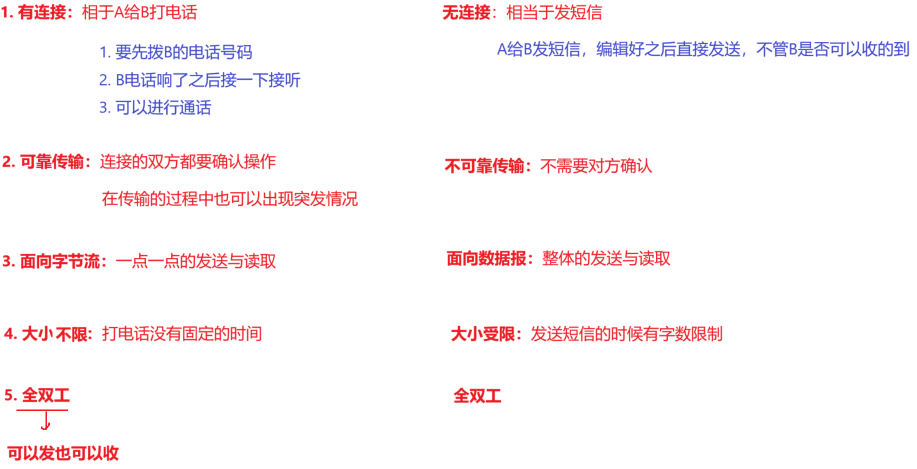 | 可靠传输 | 不可靠传输 |