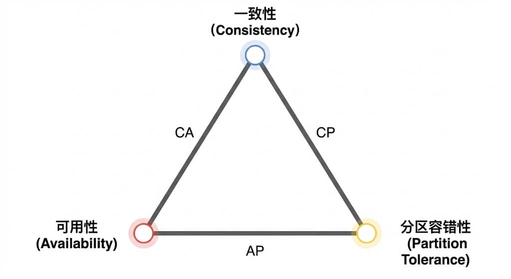 CAP 定理 指的是一个分布式系统无法同时满足一致性(Consistency) 、可用性(Availability)和分区容错性(Partition Tolerance) 。由于网络分区(P)在广域网中是客观存在的必然,架构师只能在 CP (如 HBase,牺牲可用性保一致性)和 AP (如 Cassandra,牺牲一致性保可用性)之间做选择。