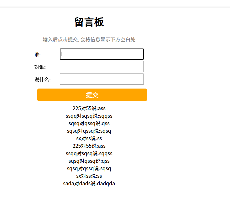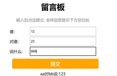 <p class="grey">输入后点击提交, 会将信息显示下方空白处</p>