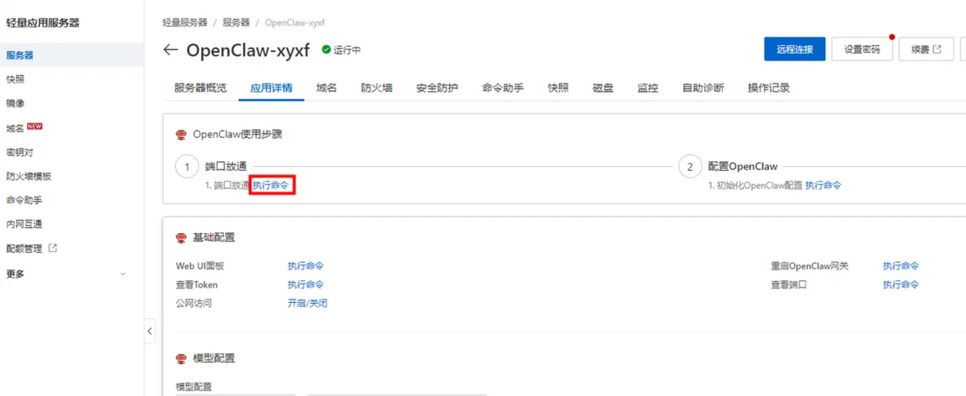 端口放通在OpenClaw使用步骤区域中,单击端口放通下的执行命令,可开放获取OpenClaw 服务运行端口的防火墙。