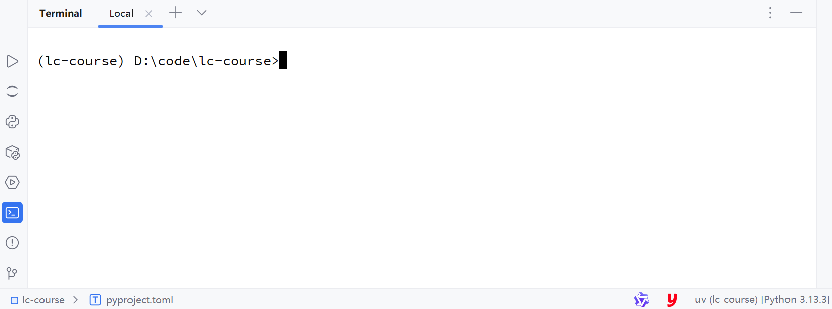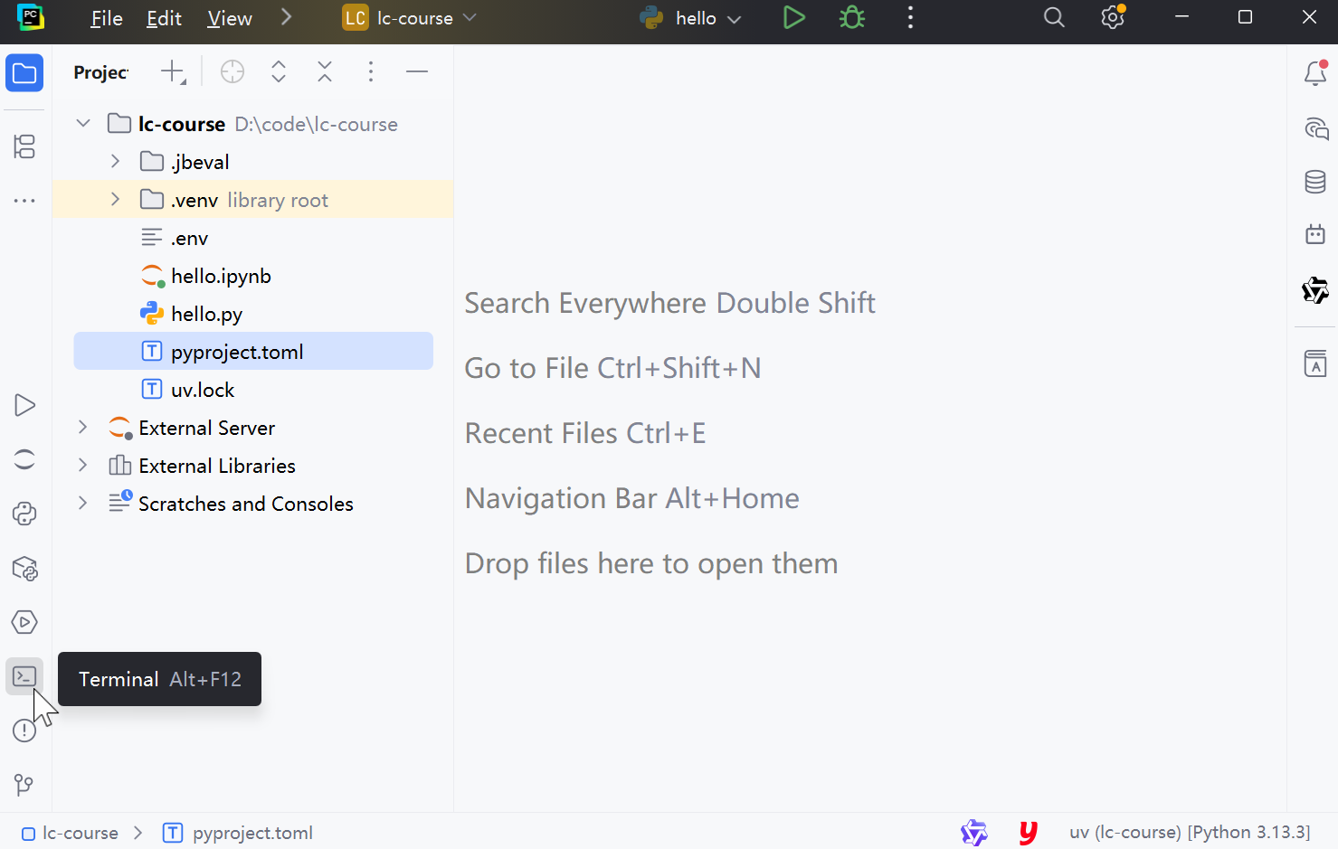 接下来我们就创建一个项目,我们会使用PyCharm作为开发工具,以uv作为项目管理工具。
