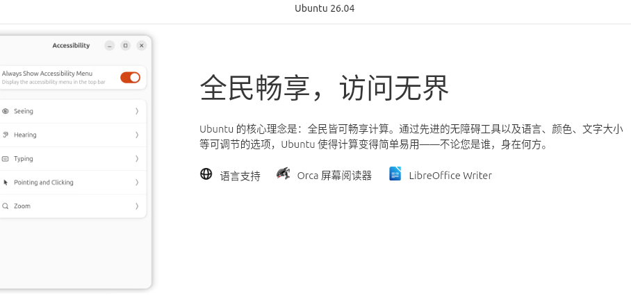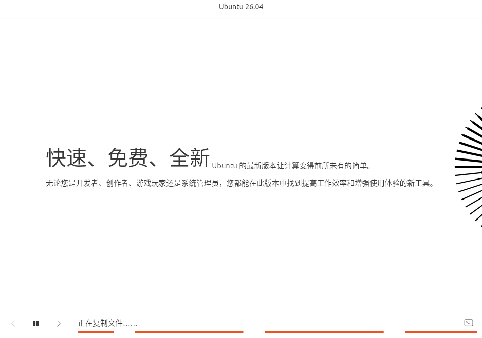 安装过程中的动画还展示了Ubuntu 26.04 LTS的核心特点。