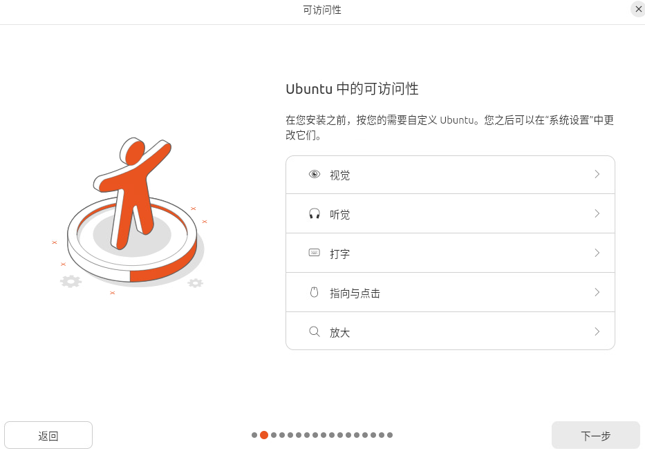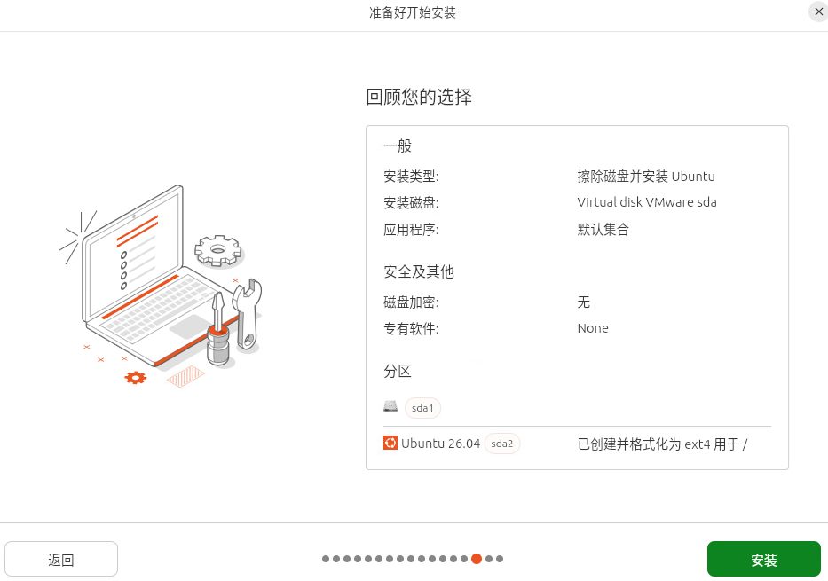 进入到Ubuntu安装程序,看到下面密密麻麻的小点,步骤真不少啊,我们今天来数一下。
