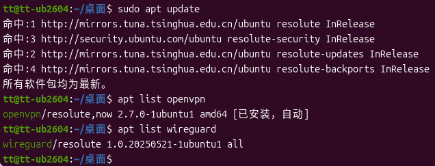 不愧是新鲜出炉的镜像,所有软件都是最新的。安装动画里把WireGuard夸得天花乱坠,结果实测一看,挂羊头卖狗肉,自带的依旧是openVPN这员老将(保姆级教程:一条命令部署OpenVPN管理系统V4版,支持Win/Mac/安卓/iOS全平台接入)。想要WireGuard?对不起,请自行安装(我们的WireGuard管理系统支持手机电脑了!全平台终端配置,支持扫码连接,一键搞定)。这套路,懂得都懂。